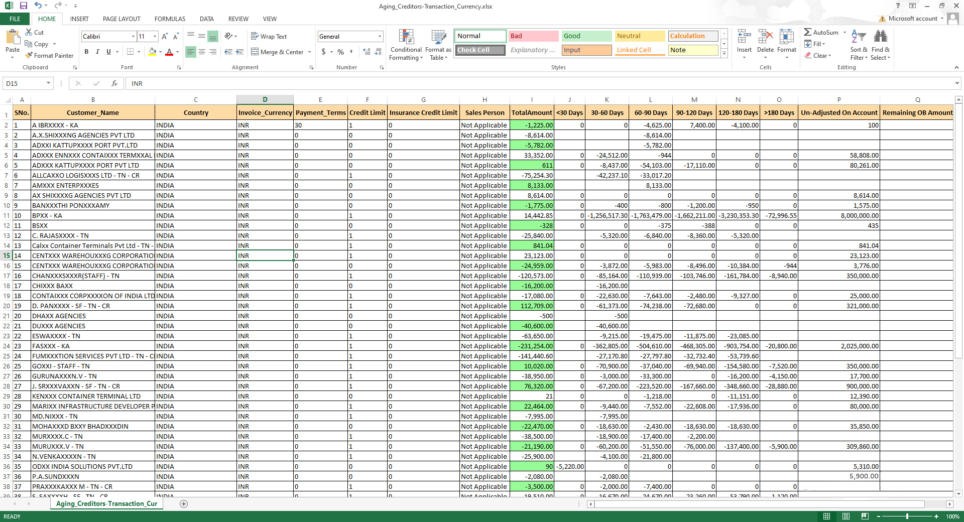 Aging Creditors INR Excel – 1593