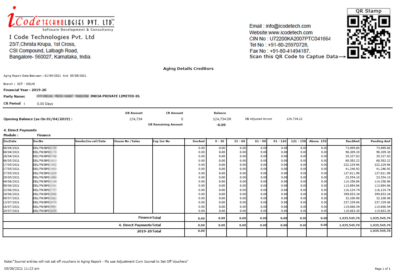Aging Details Creditors (INR) - 1329