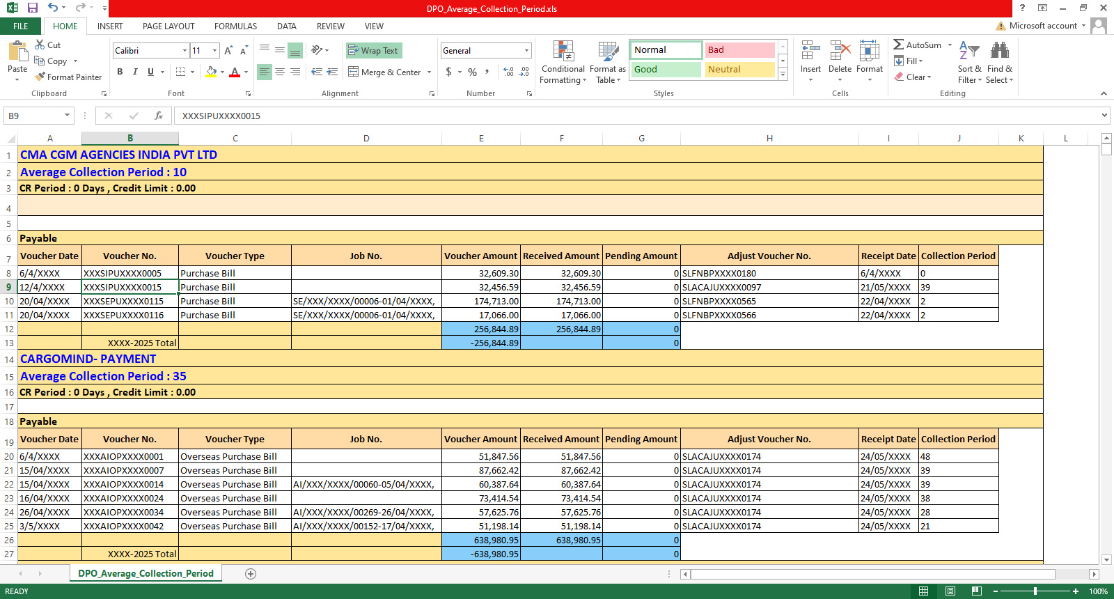 Aging Creditors INR Excel – 1593