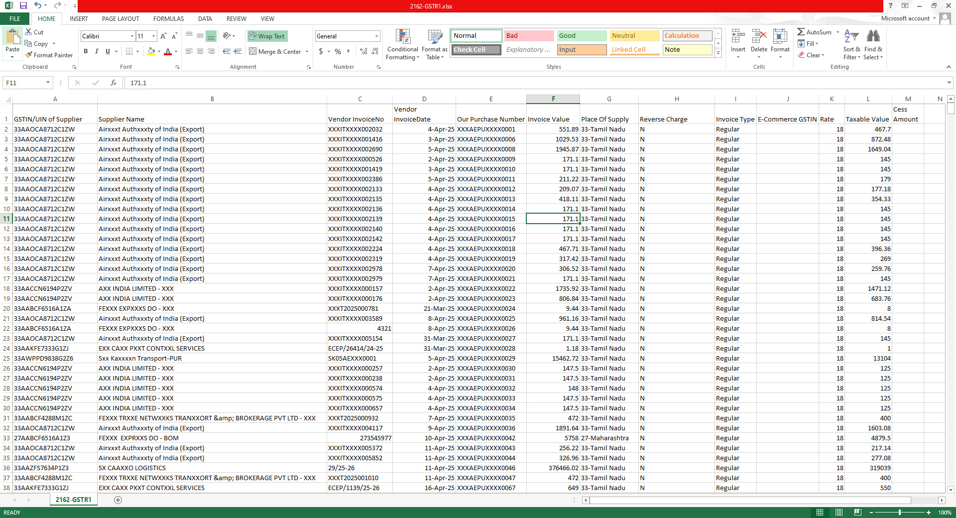 GSTR Inward Excel – 1135