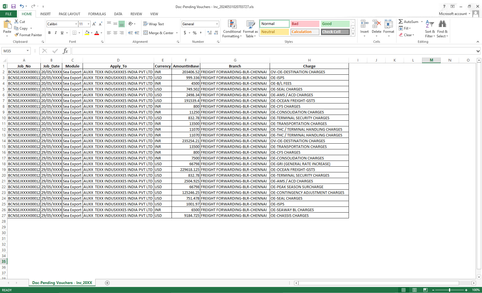 Job Report Operation Air Import